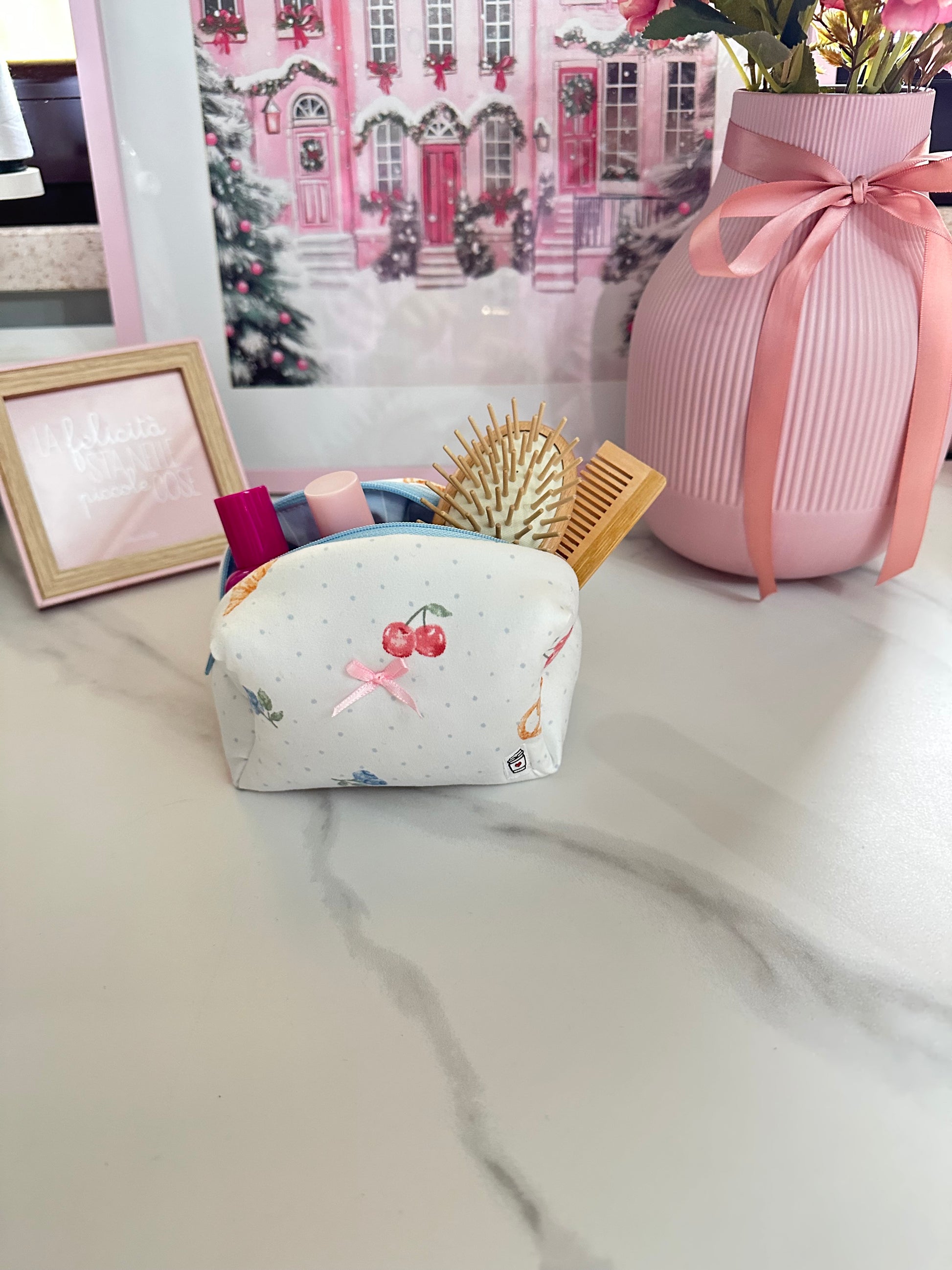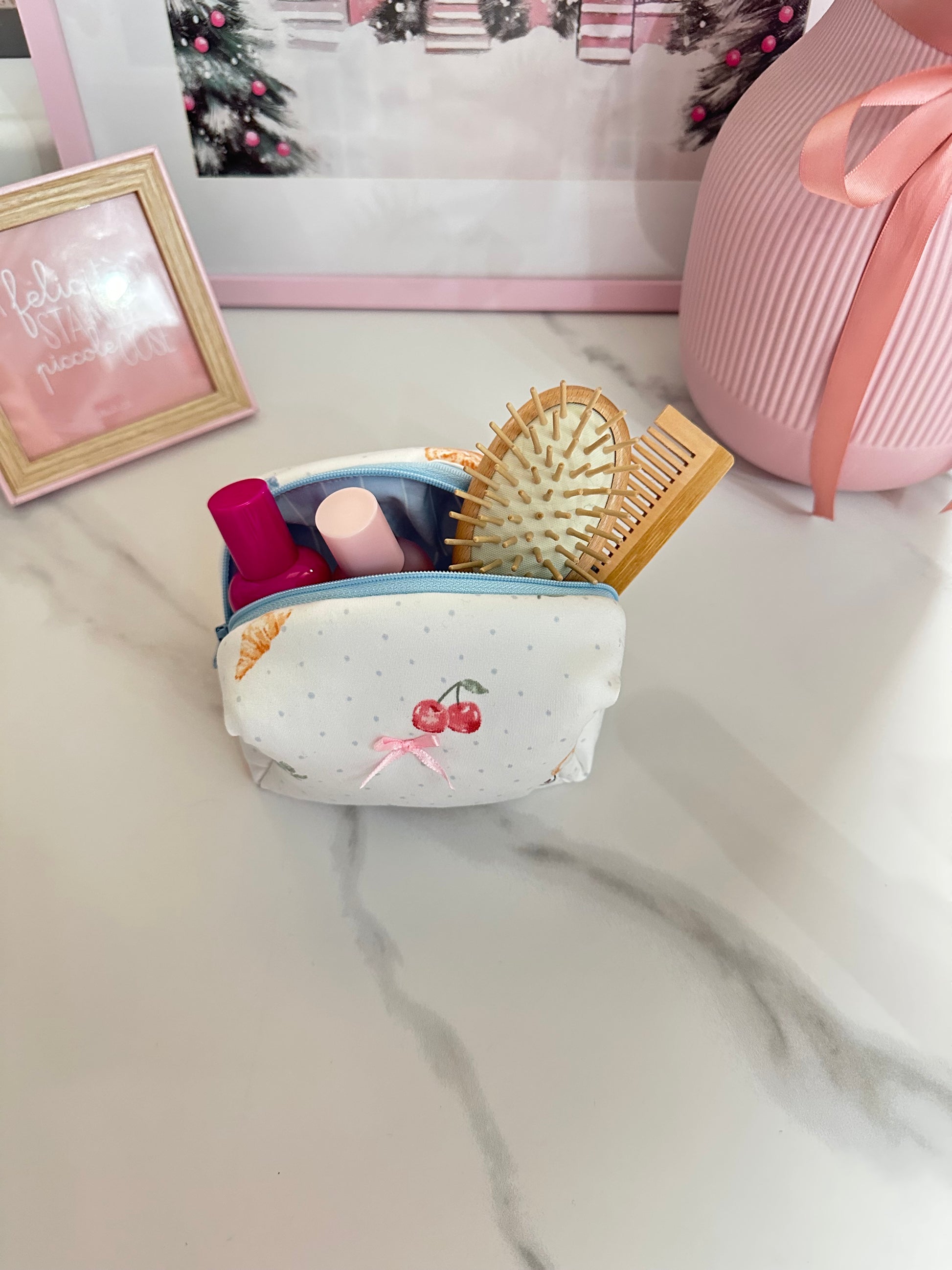 Il beauty piccolo è perfetto da inserire all’interno delle vostre borse per portare sempre con voi tutto il necessario per un ritocco make-up veloce! Ma è perfetta anche per tenere in ordine la vostra borsetta! Super cute e comoda da portare ovunque tu vada!