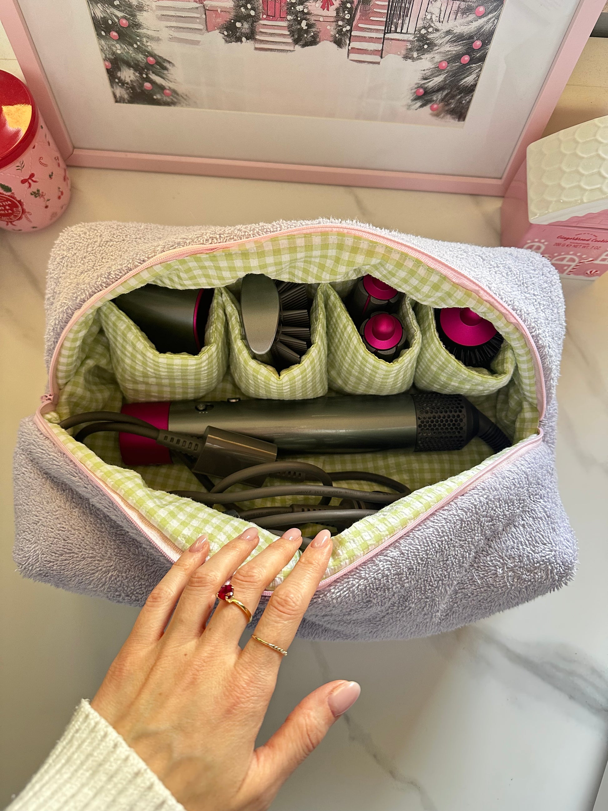 Il beauty porta dyson è perfetto per inserire all’interno tutti gli accessori per una piega impeccabile! Perfetta per spazzola, shampoo e tutto il necessario! È super comoda da mettere in valigia o nei vostri trolley in modo da avere sempre tutti gli accessori per la piega nello stesso posto!