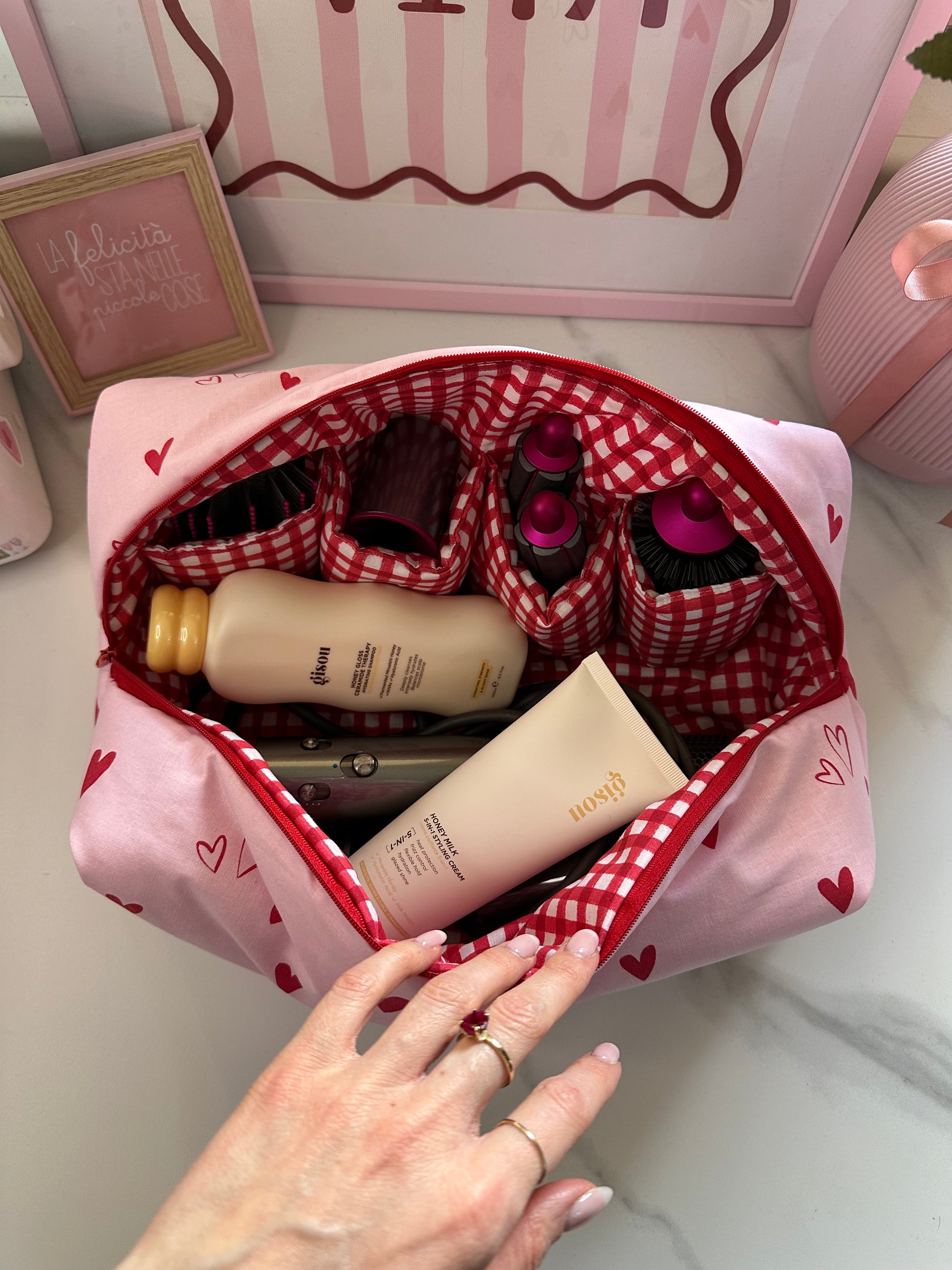 Il beauty porta dyson è perfetto per inserire all’interno tutti gli accessori per una piega impeccabile! Perfetta per spazzola, shampoo e tutto il necessario! È super comoda da mettere in valigia o nei vostri trolley in modo da avere sempre tutti gli accessori per la piega nello stesso posto!